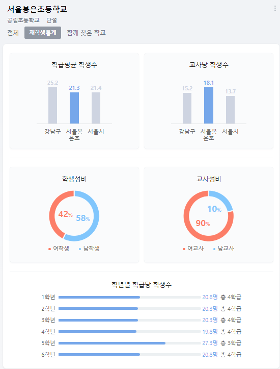 - 6학년 학생수가 적은 것으로 보아 중학교를 위해 전학가는 것일 수 있음